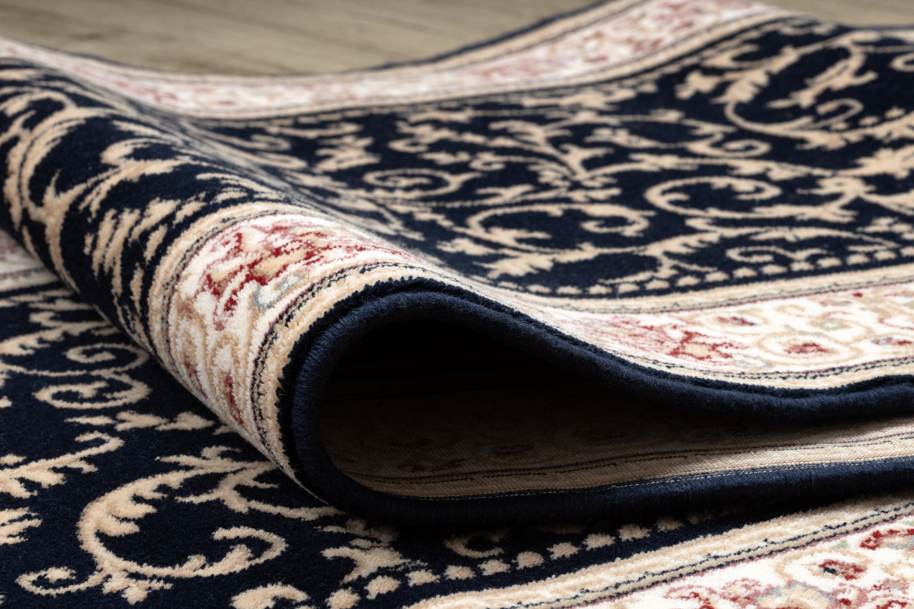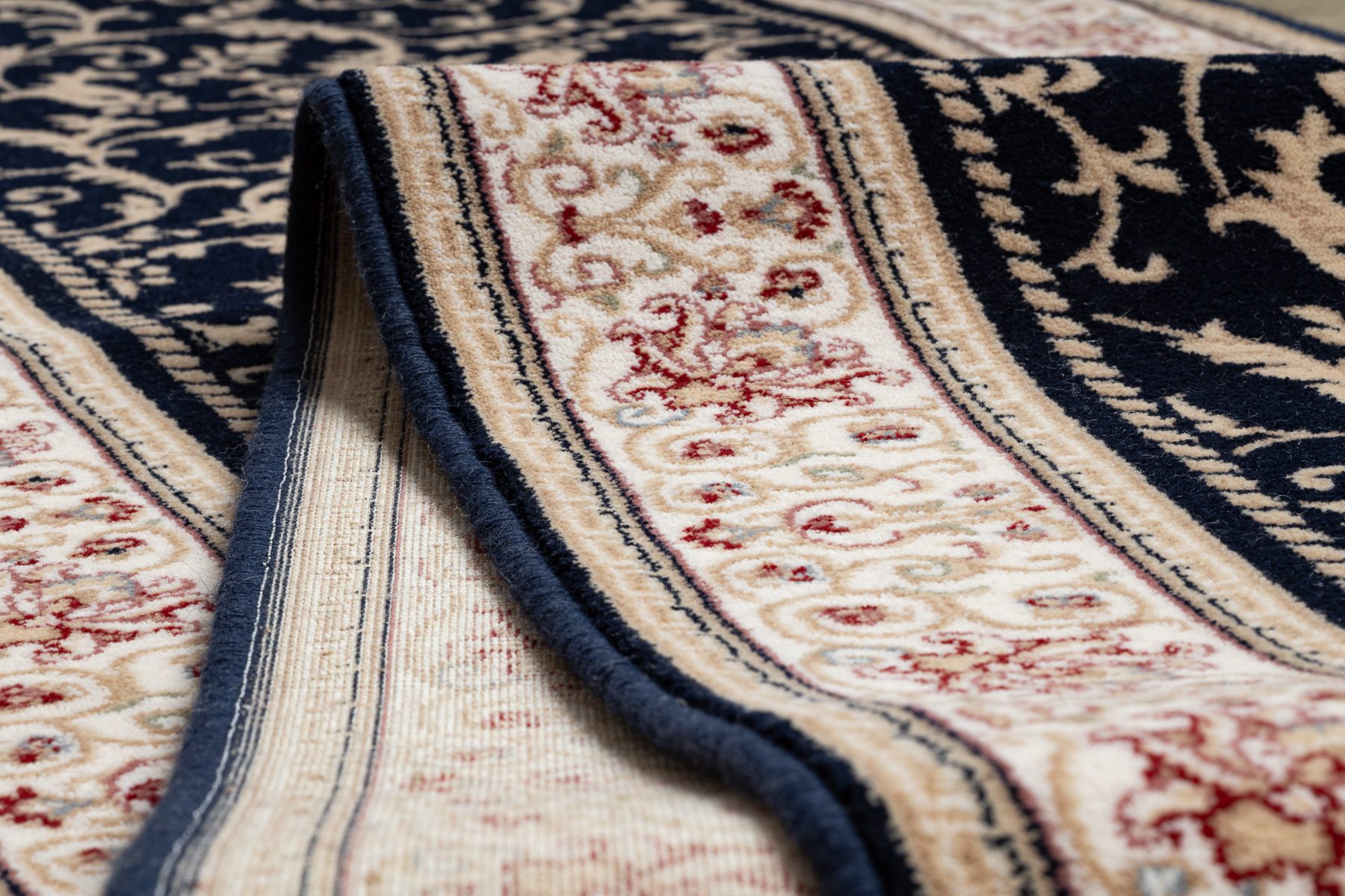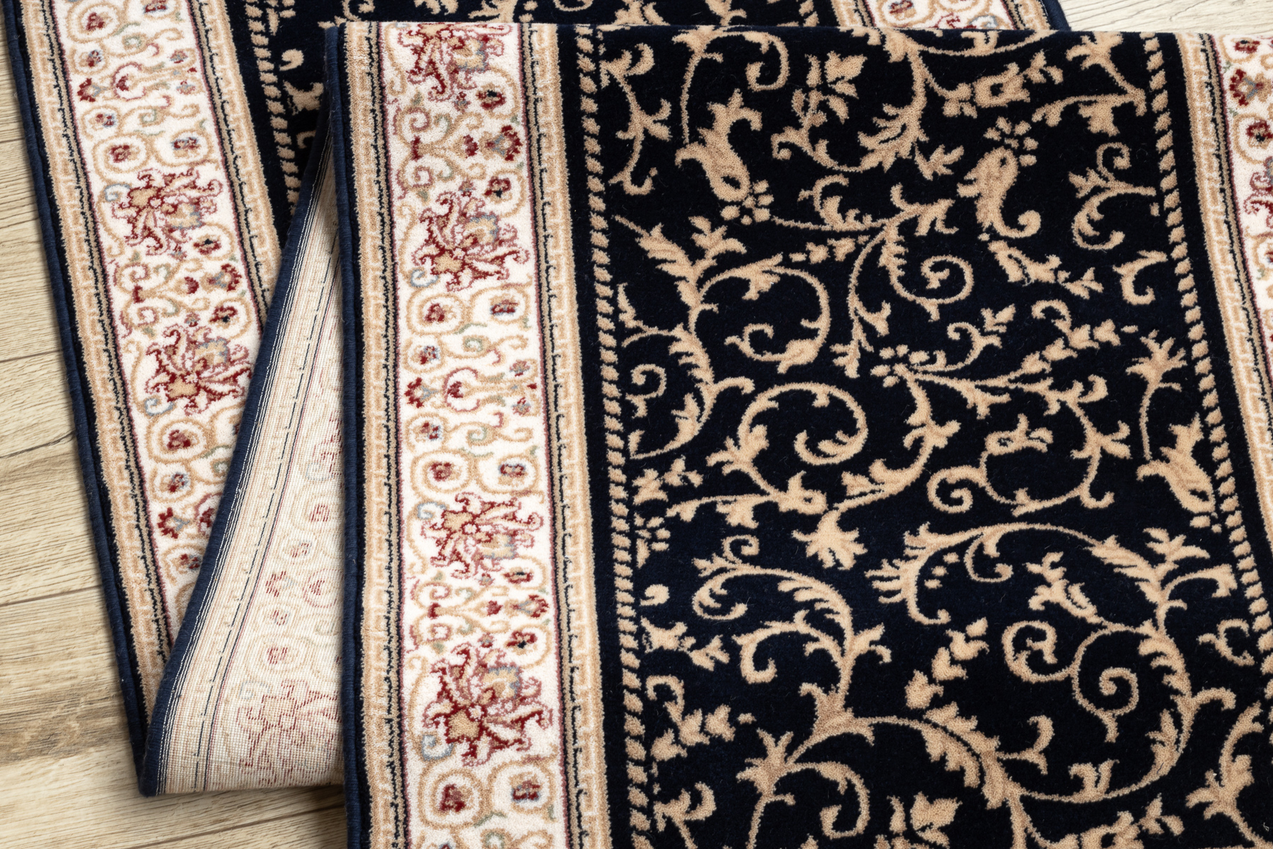 Läufer Wolle NAIN Ornament 2904 51011 beige / dunkelblau 100cm