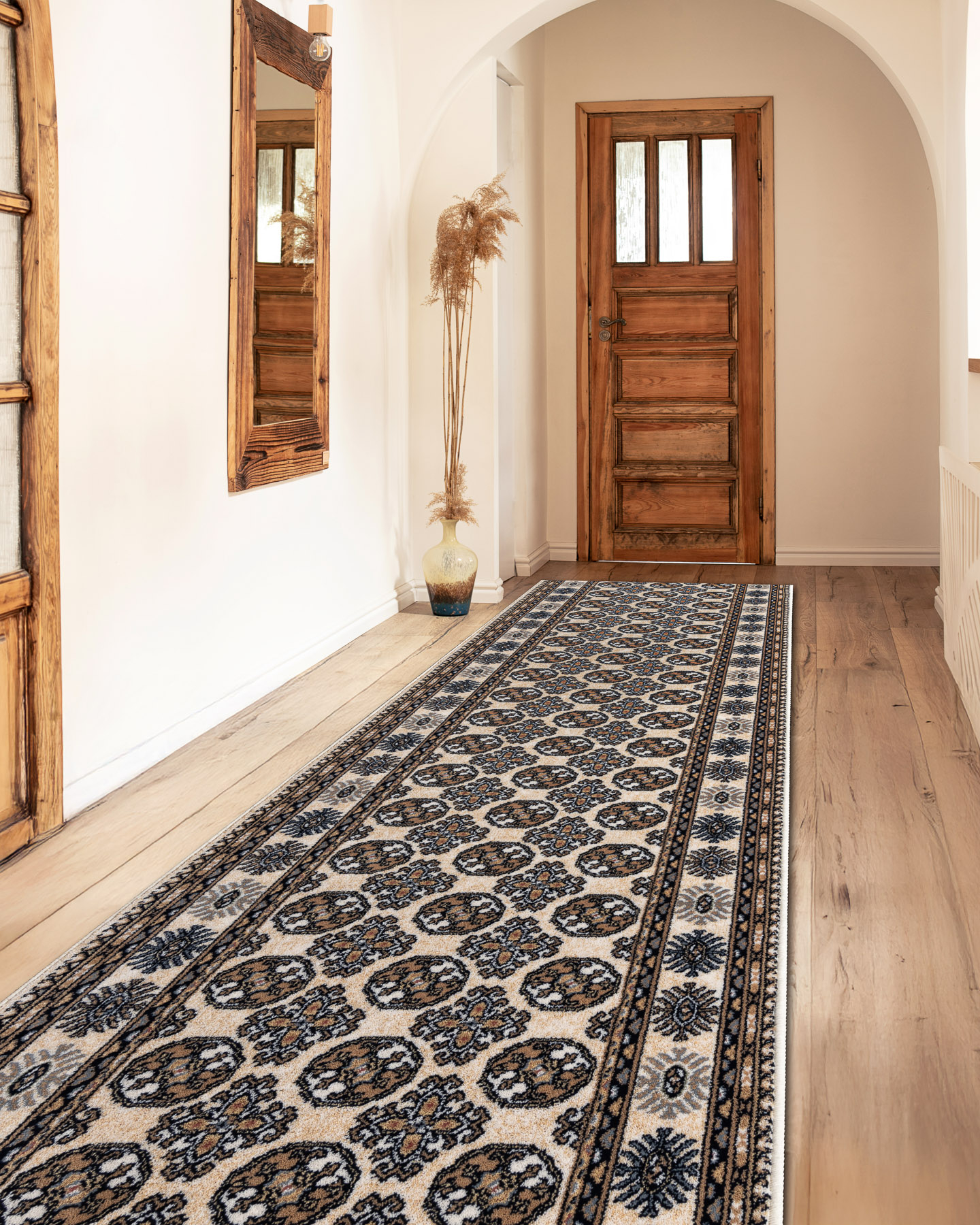 Läufer Wolle NAIN Rosette 6177 51033 beige / dunkelblau 80cm