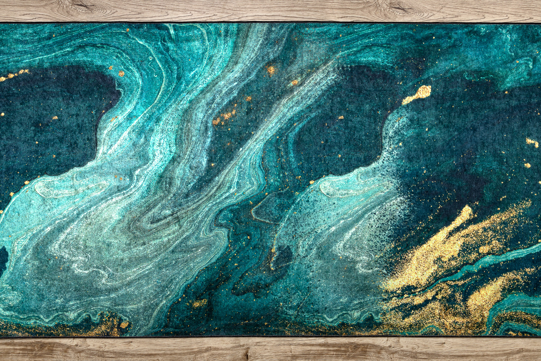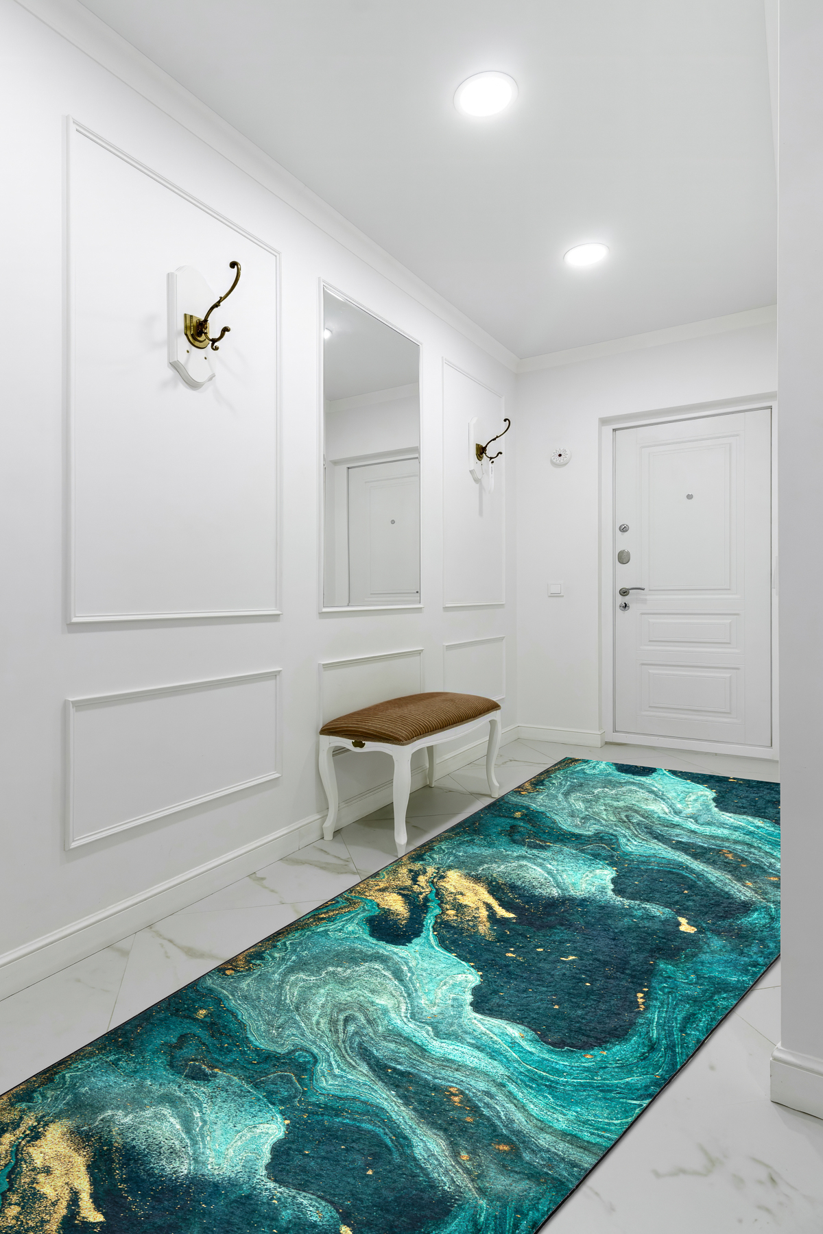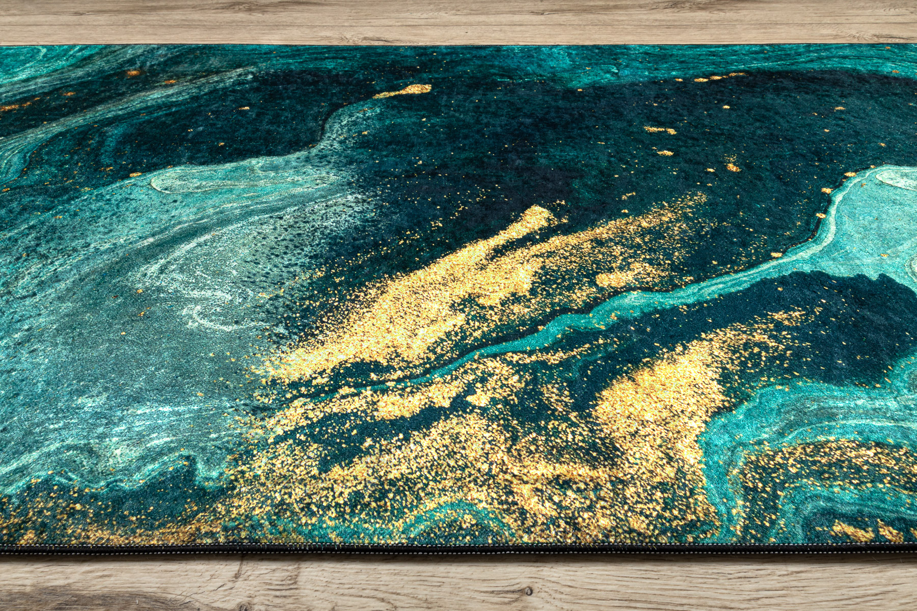 Läufer Antirutsch LOTUS SHADOWS 37750 Abstraktion grün / gold ZUM WASCHEN