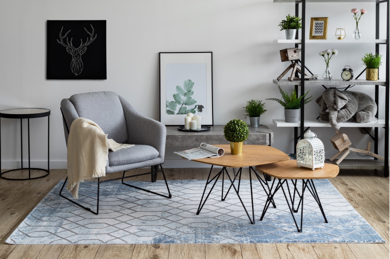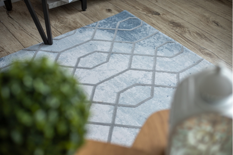 Teppich ACRYL VALENCIA 3951 HEXAGONE Blau/Grau