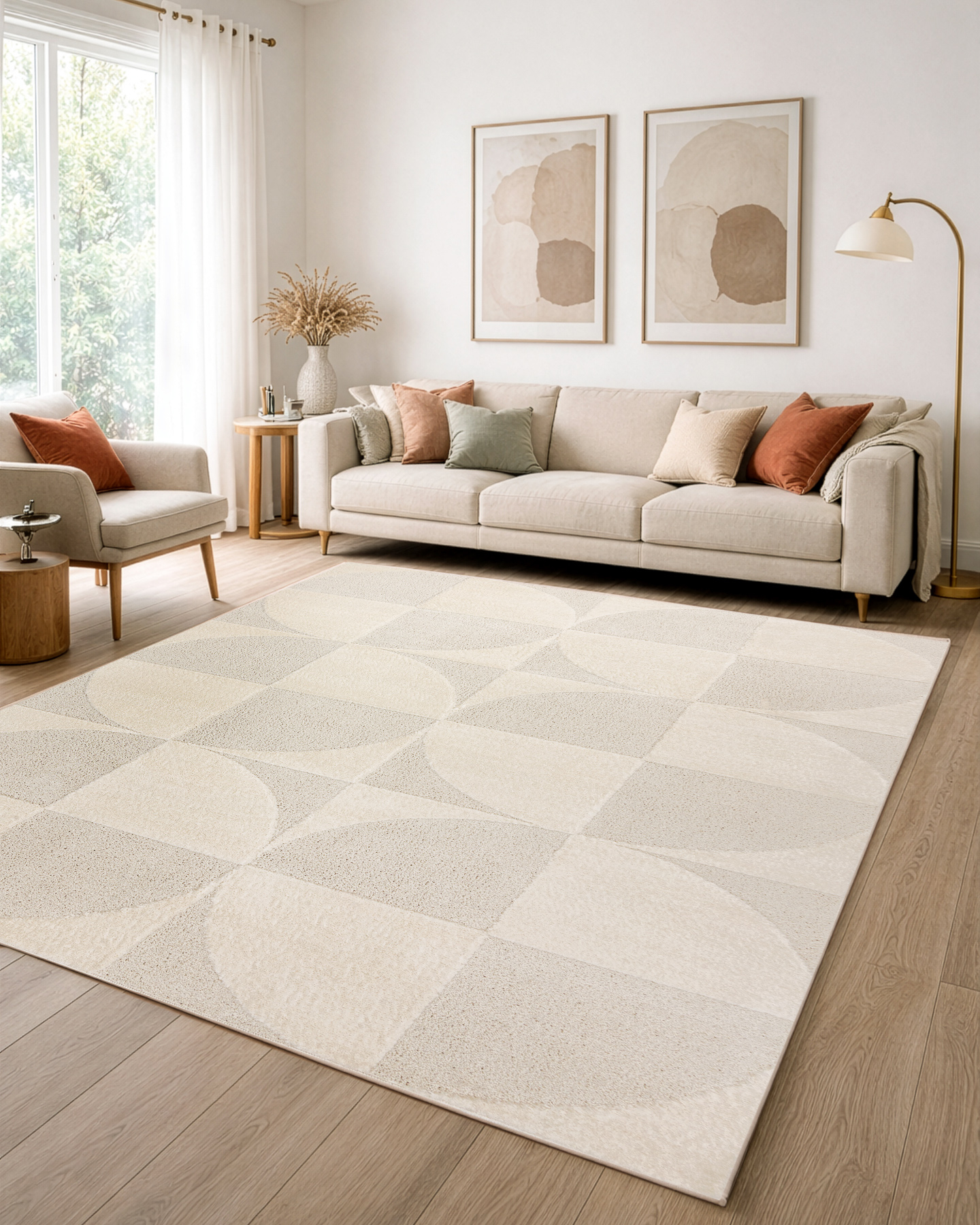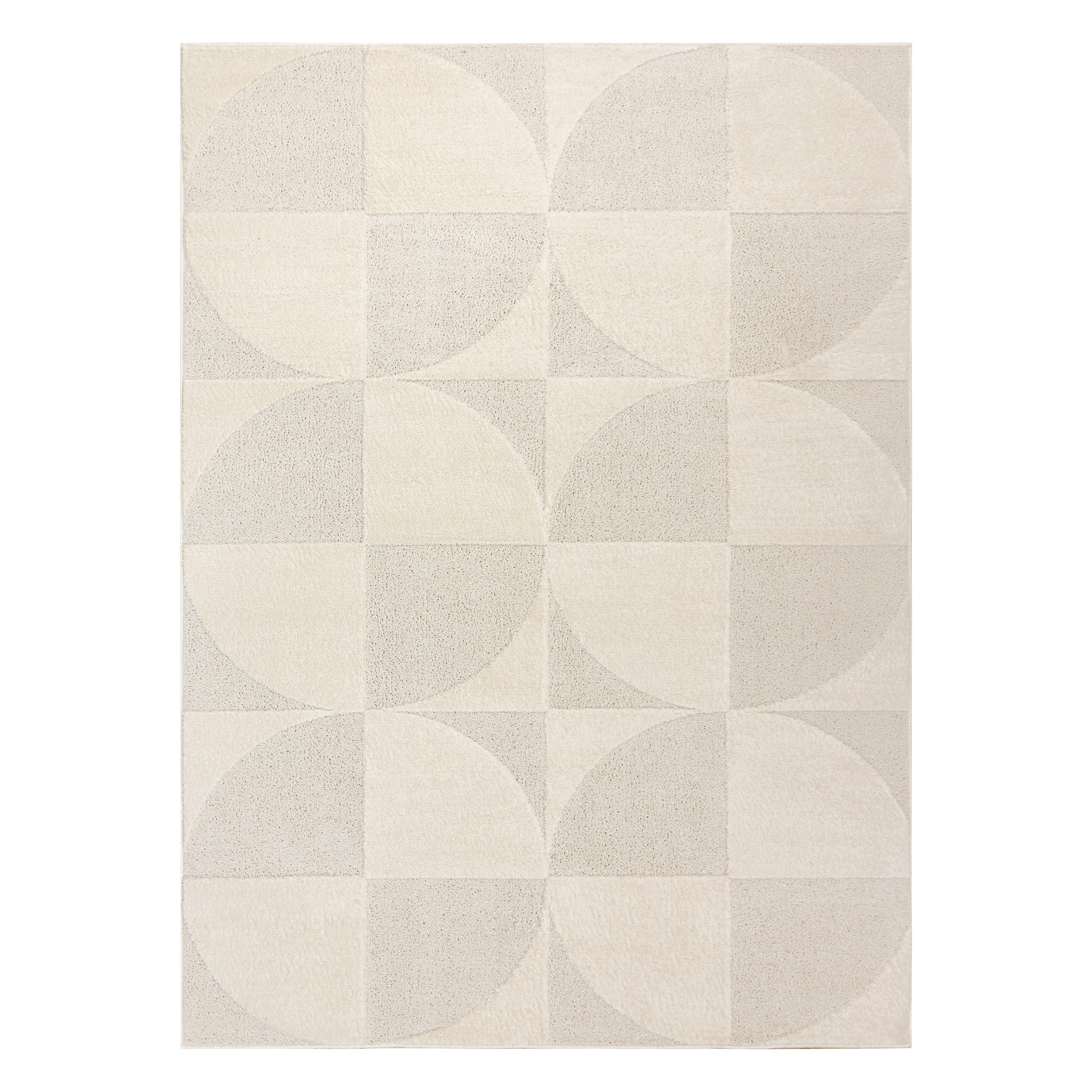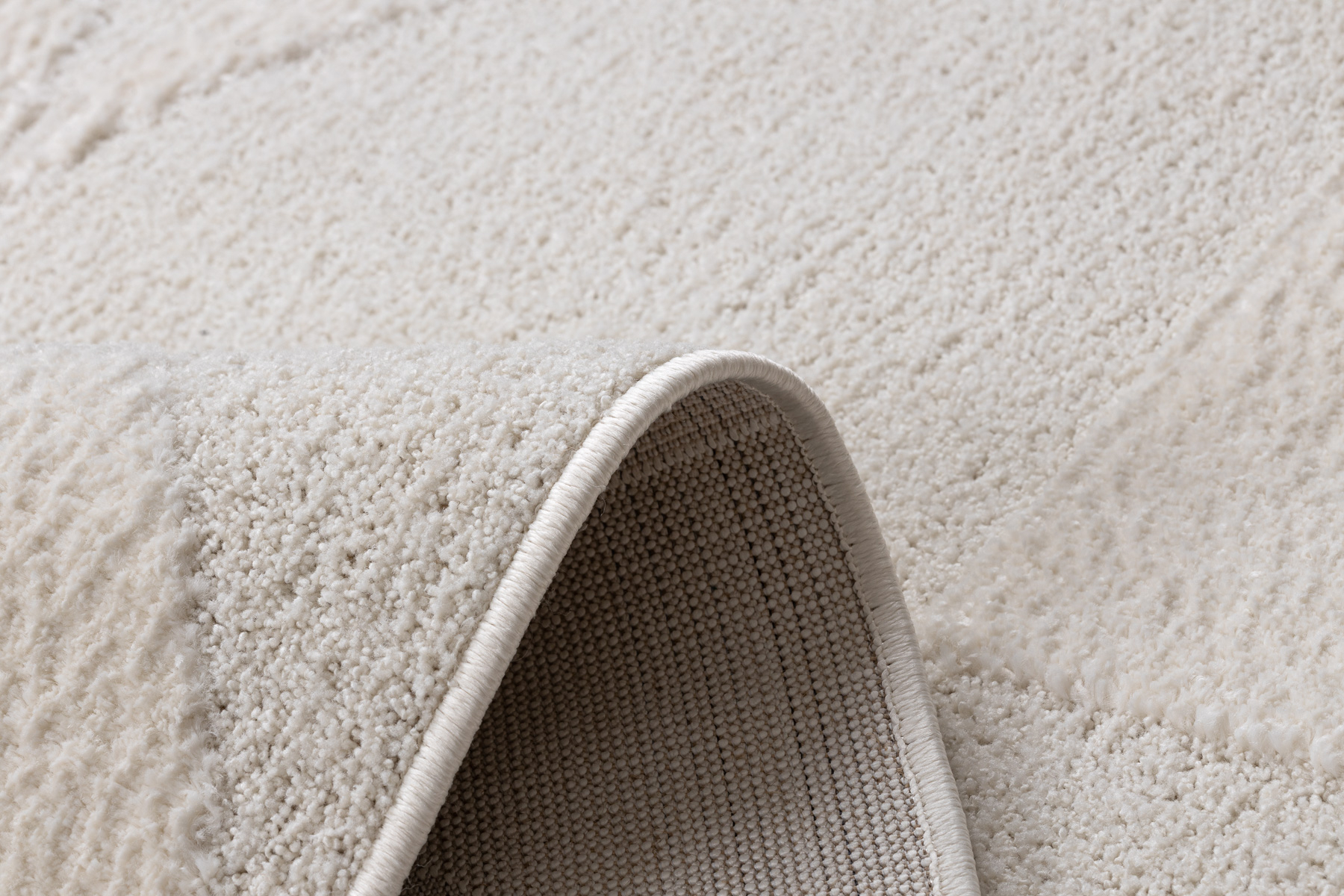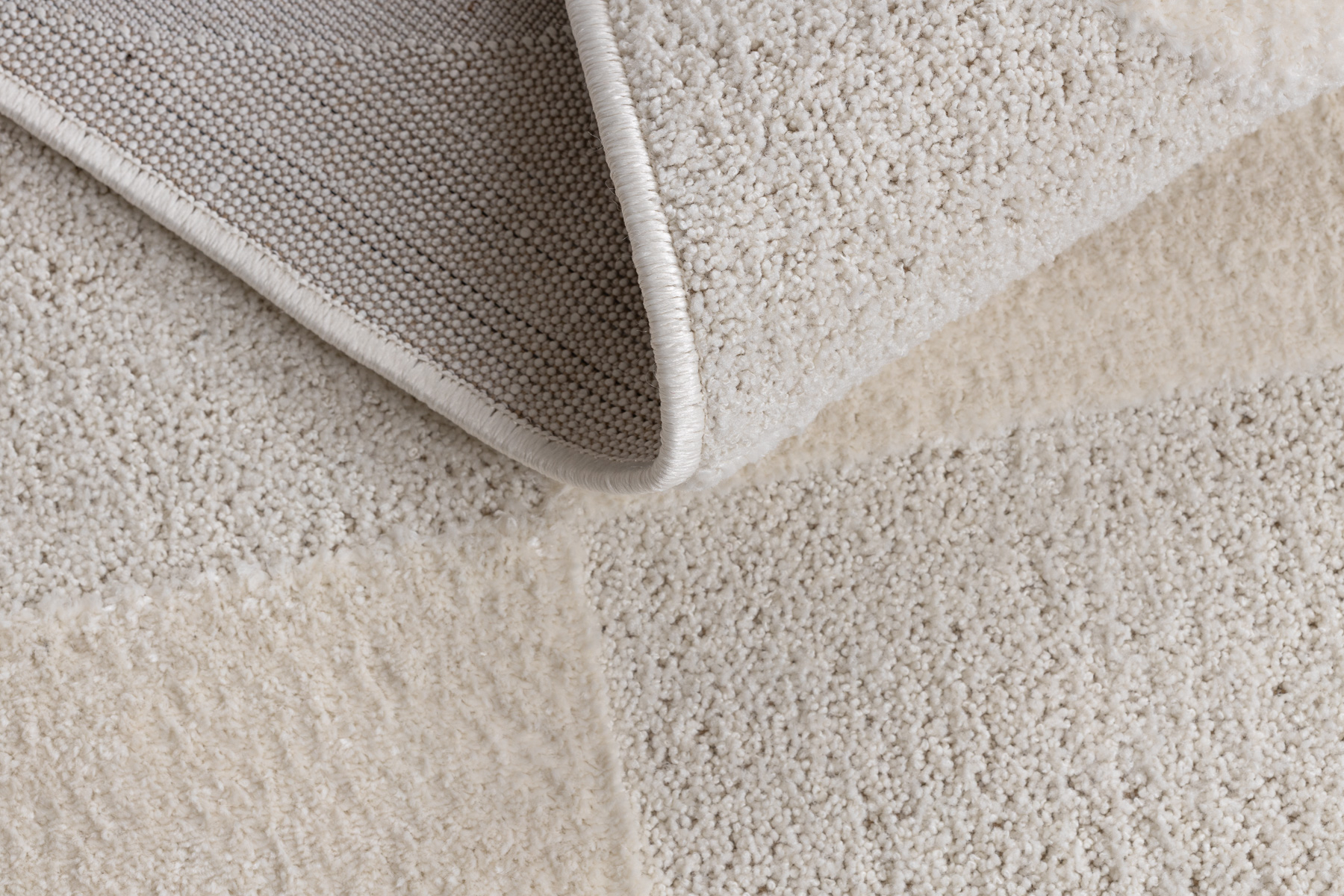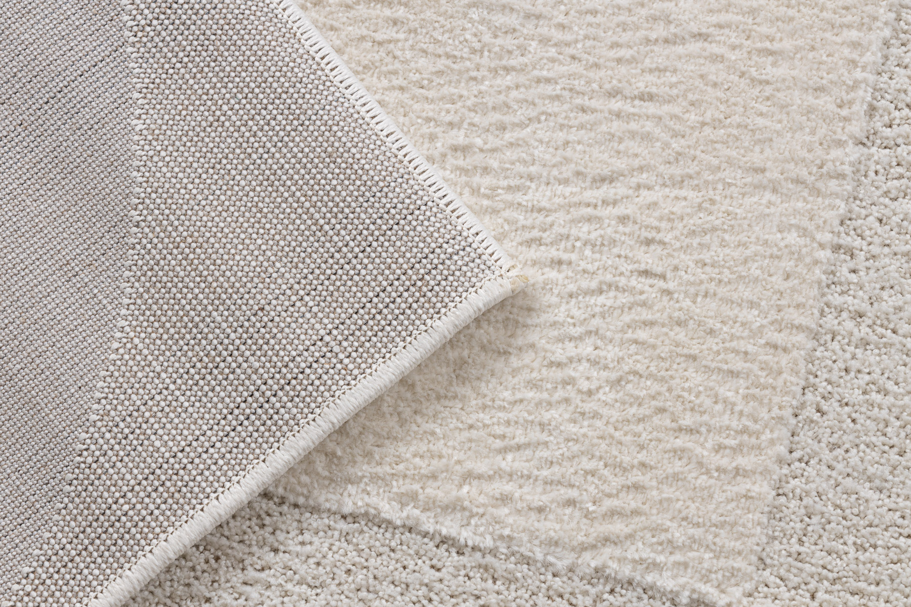 Die Kombination hochwertiger Materialien wie Polypropylen und Polyester sorgt nicht nur für ein ansprechendes Erscheinungsbild, sondern auch für hohen Nutzkomfort und lange Haltbarkeit. Der sanft aufgerichtete Flor mit einer Höhe von 12 mm bietet eine angenehme Weichheit unter den Füßen und betont gleichzeitig die Struktur der Muster sowie die subtilen Übergänge zwischen geometrischen und organischen Formen.