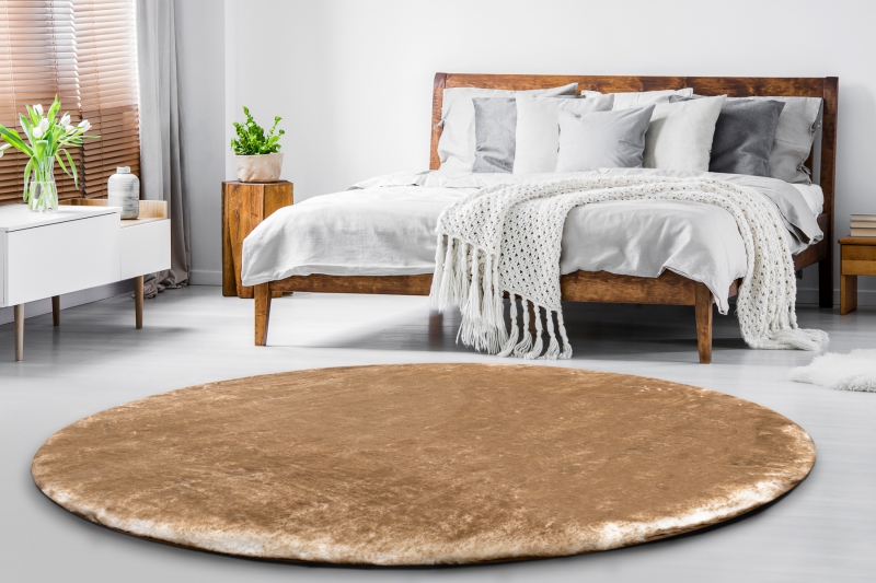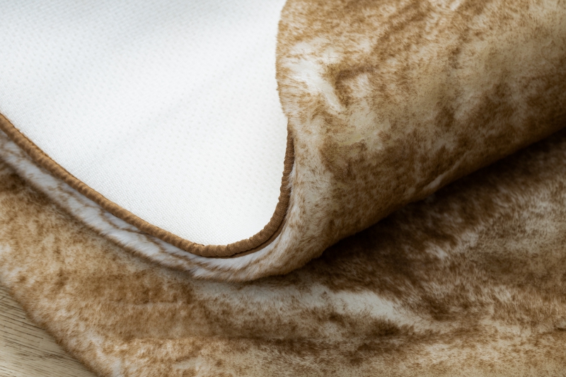 Moderner Waschteppich LAPIN Kreis Shaggy, Antirutsch elfenbein / braun