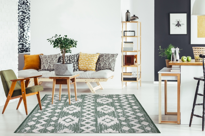 Dieser universelle Teppich kann sowohl drinnen als auch draußen verwendet werden.