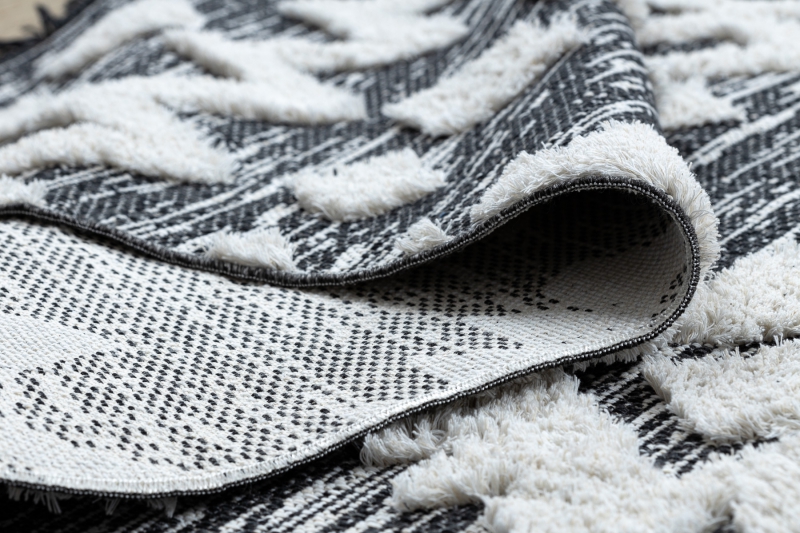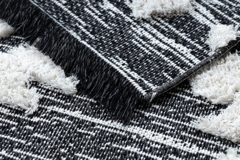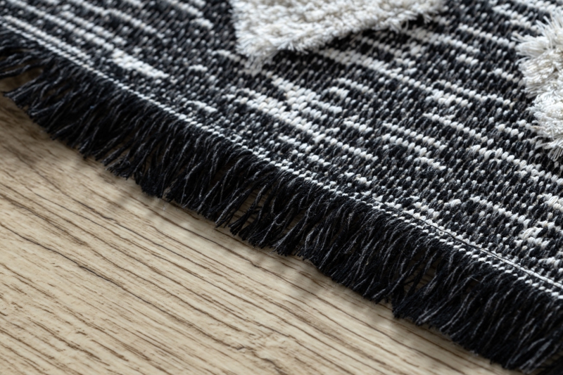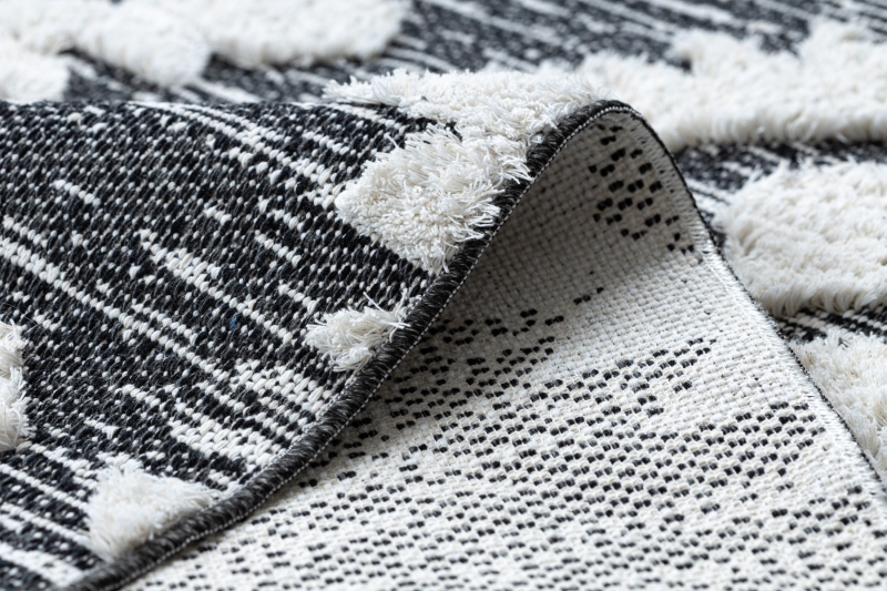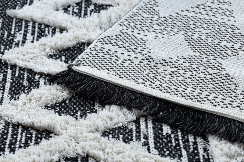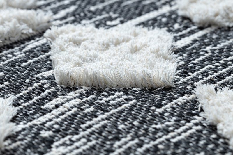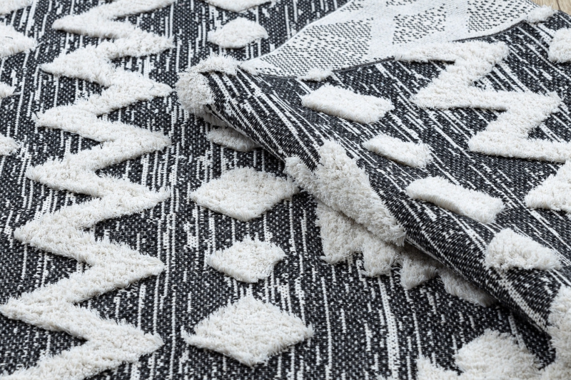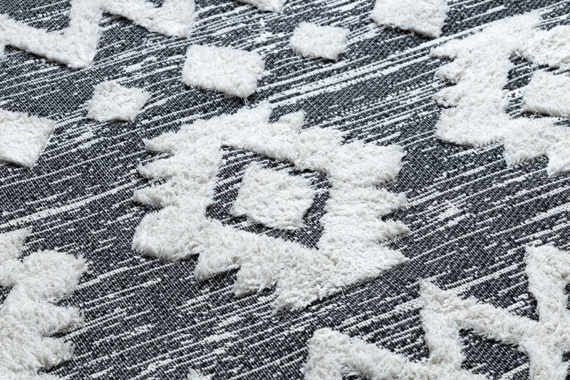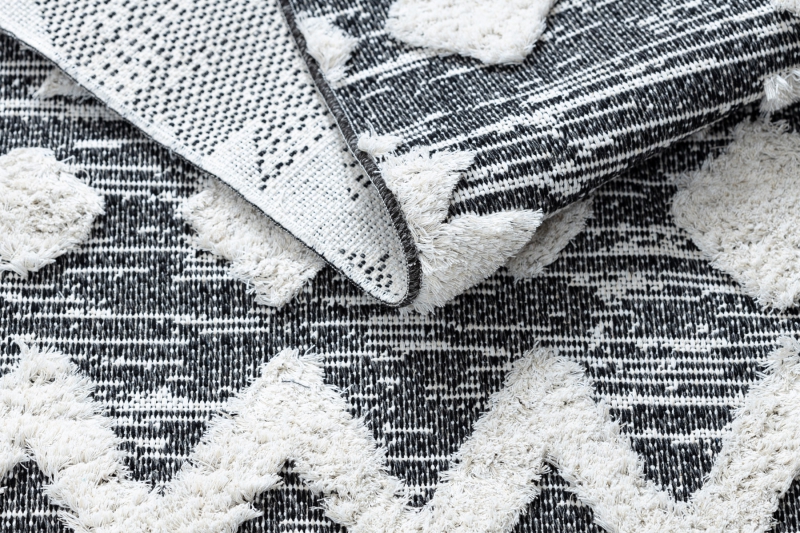 Teppich ÖKO SISAL BOHO MOROC Etno Zigzag 22319 Franse - zwei Ebenen aus Vlies grau / creme, recycelter Teppich