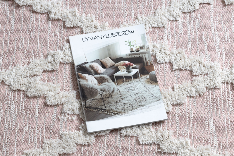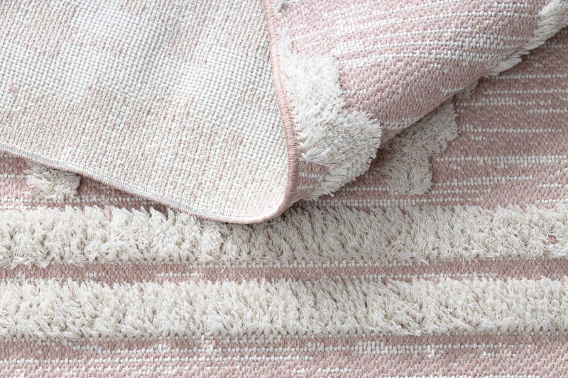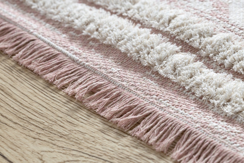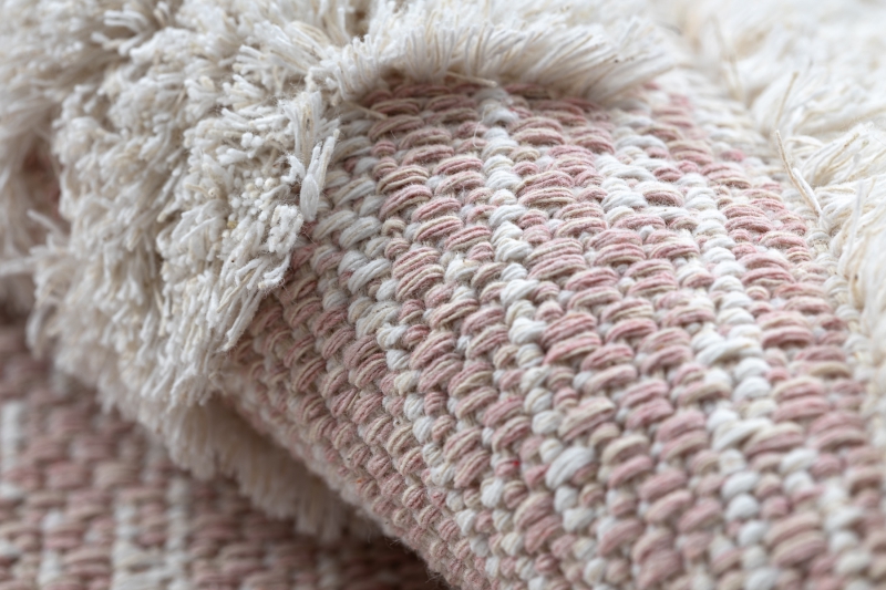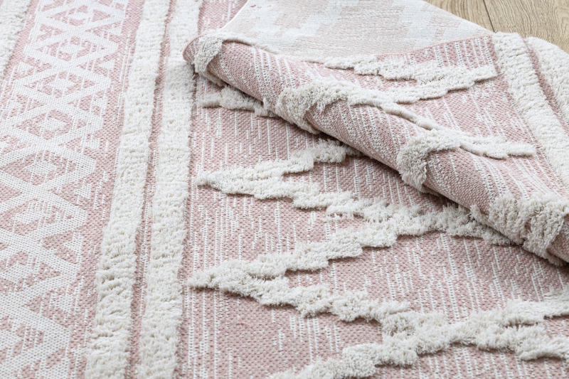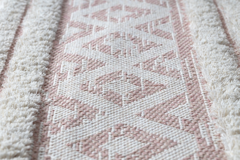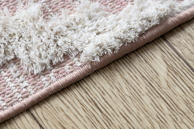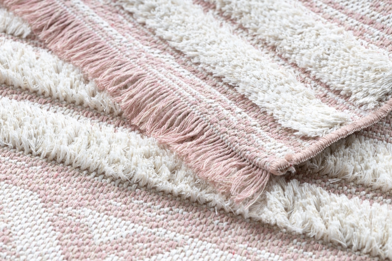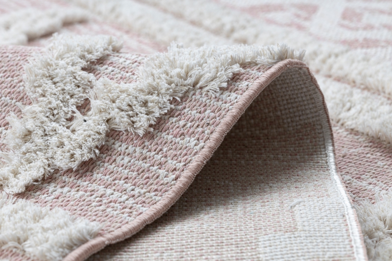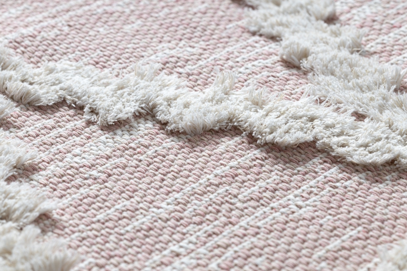 Teppich ÖKO SISAL BOHO MOROC Diamanten 22297 Franse - zwei Ebenen aus Vlies rosa / creme, recycelter Teppich