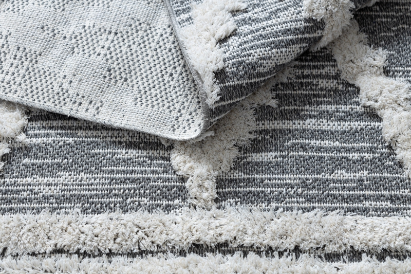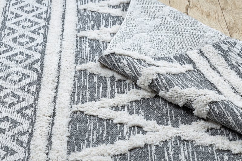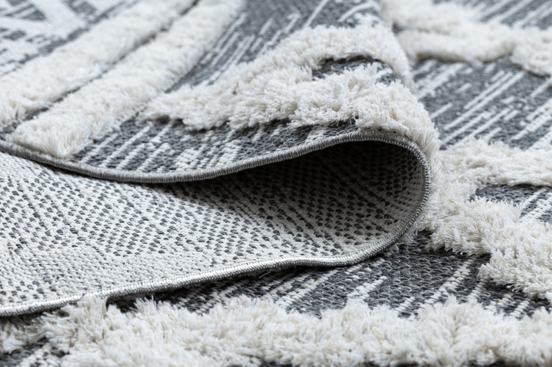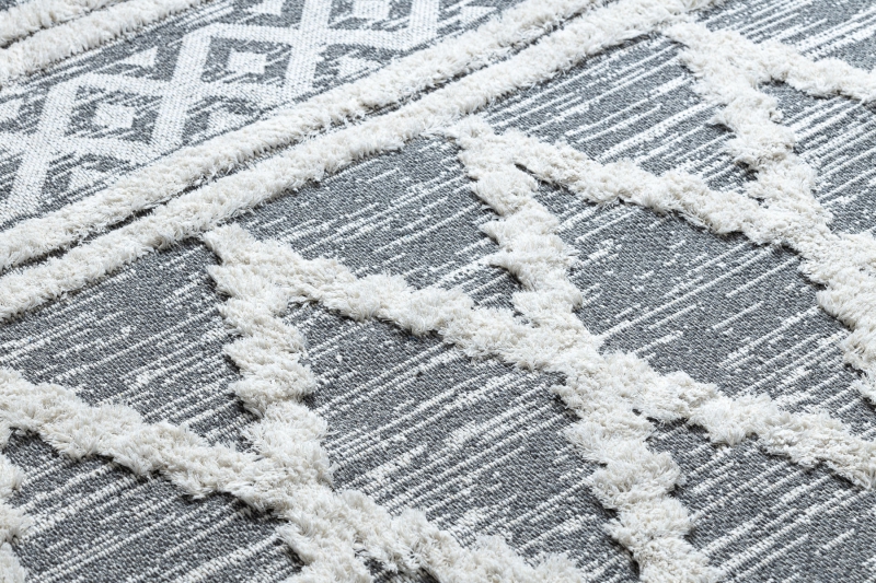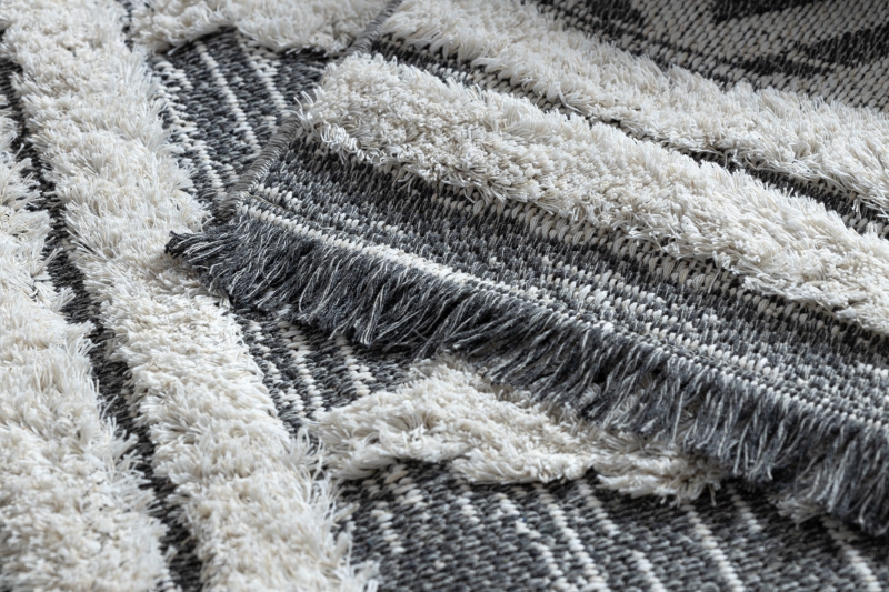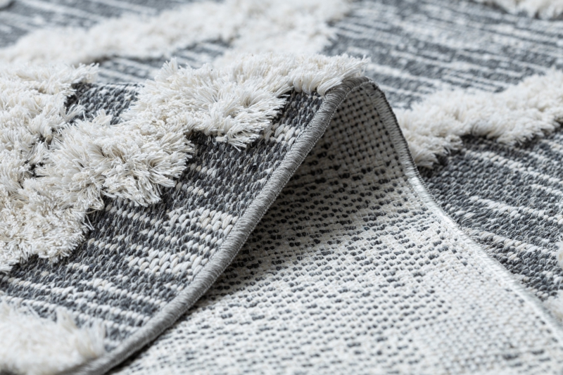 Teppich ÖKO SISAL BOHO MOROC Diamanten 22297 Franse - zwei Ebenen aus Vlies grau / creme, recycelter Teppich