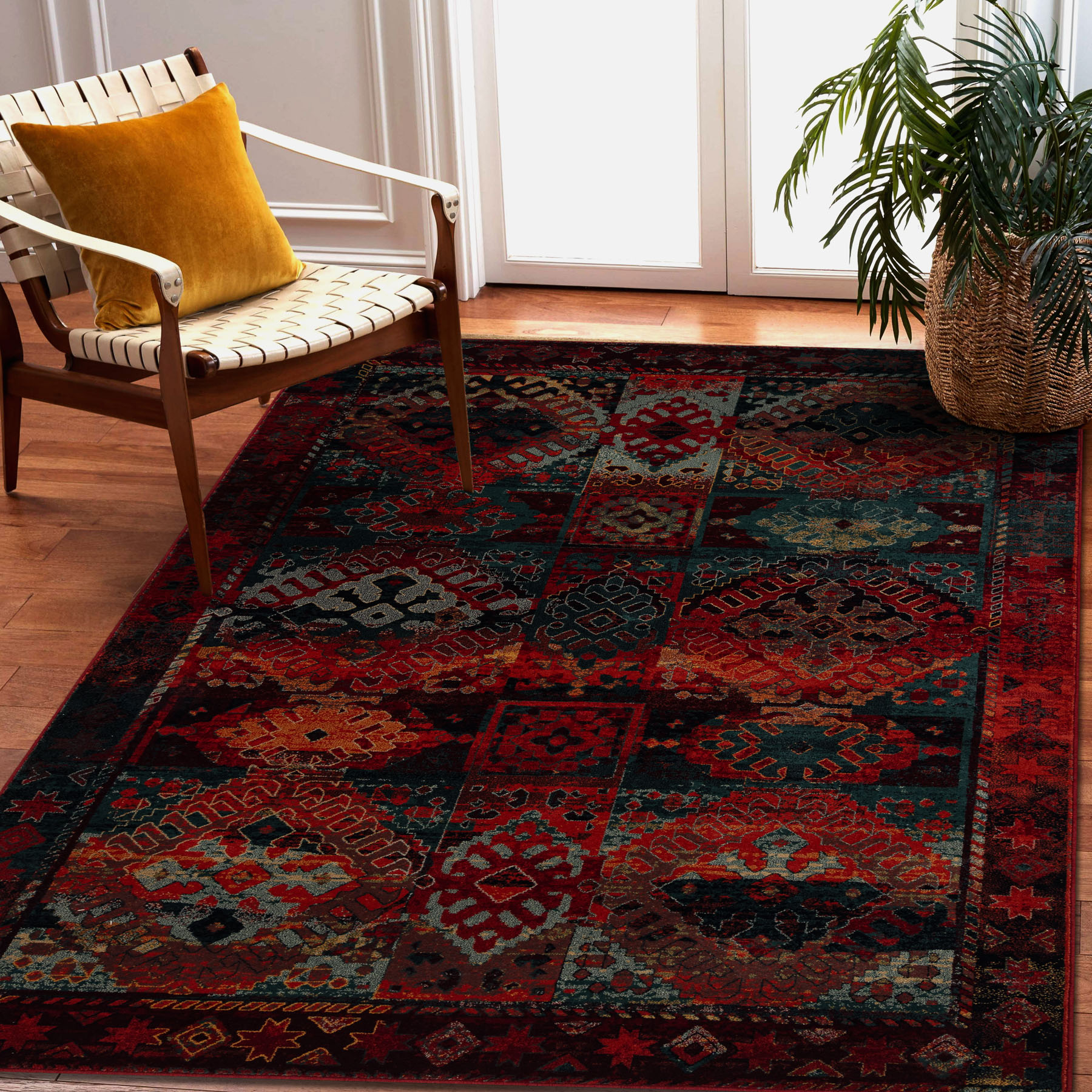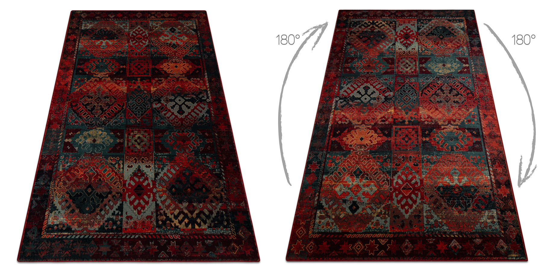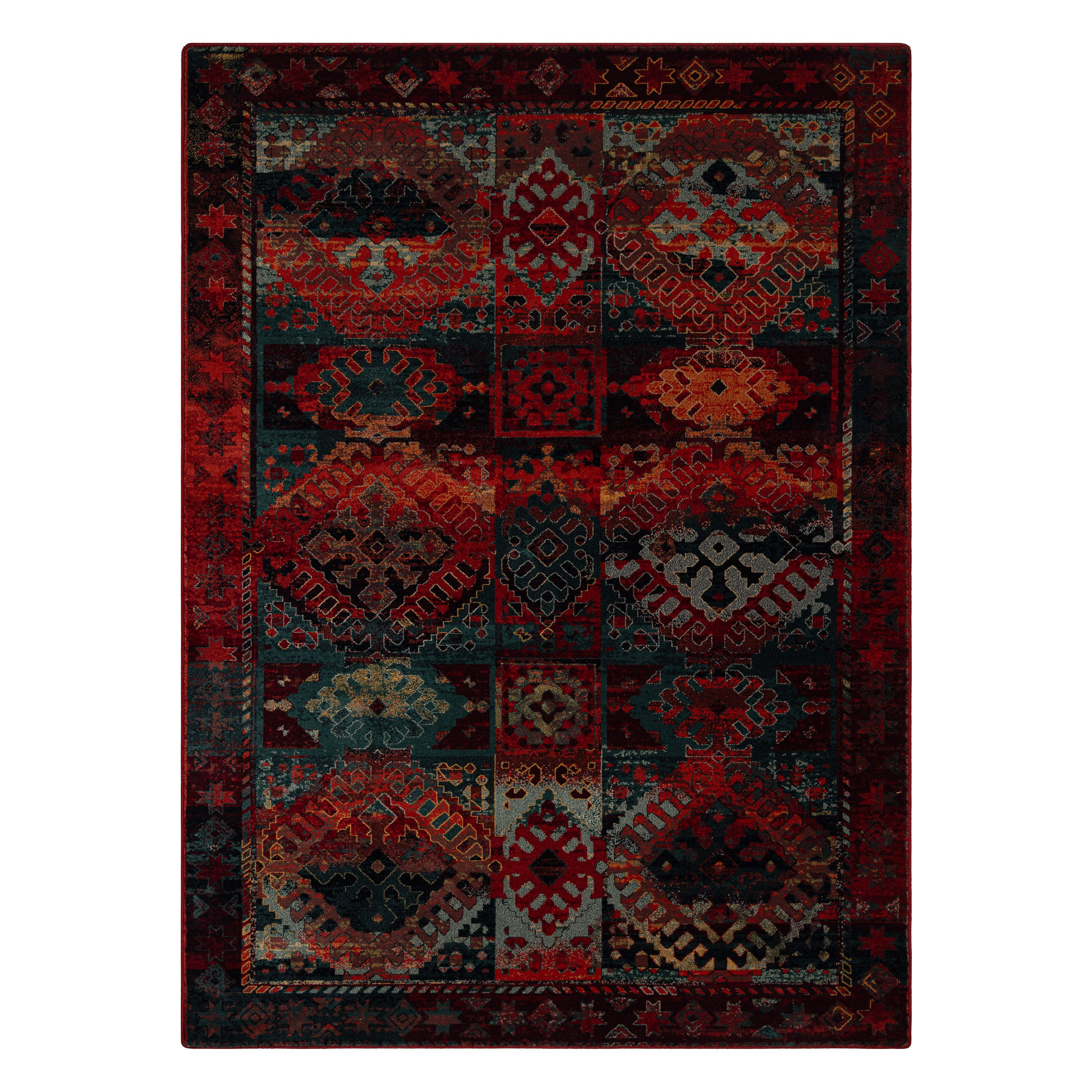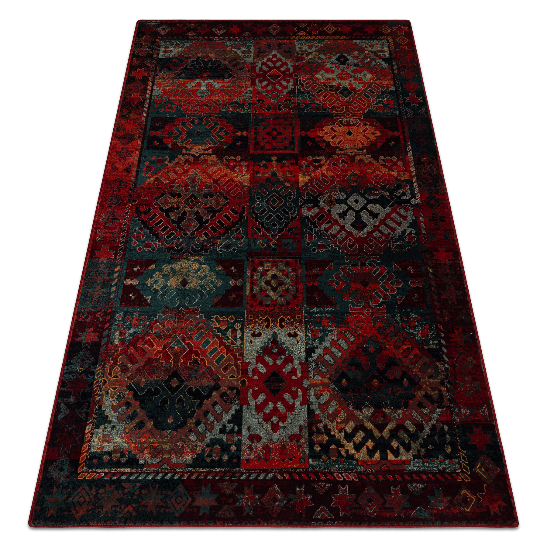 Wollteppich OMEGA AVAR Rahmen, Diamanten, orientalisch - rubin