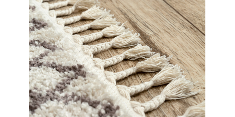 Warum sollten Sie sich für einen Fransenteppich entscheiden? Es lässt sich nicht leugnen, dass solche Modelle in den letzten Saisons im Trend liegen. Sie sind daher eine attraktive Ergänzung für die meisten Einrichtungsstile. Mit ihrer Hilfe können Sie einen außergewöhnlichen Effekt erzielen. Ein beiger Teppich mit Fransen zum Beispiel passt sowohl zu gedämpften als auch zu ausdrucksstarken Interieurs. Der Teppich für das Wohnzimmer mit Fransen, wie auch für jeden anderen Raum in der Wohnung, sollte rutschfest sein. Das ist besonders wichtig, wenn kleine Kinder im Haus leben, die leicht ausrutschen könnten. Immer mehr Hersteller produzieren Fransenteppiche standardmäßig mit einer rutschfesten Unterseite. So rutscht er nicht über den Boden - egal, ob es sich um Holzparkett, Platten oder Fliesen handelt. Wenn Sie die Antwort auf die Frage, wie man einen Fransenteppich wäscht, bereits kennen, können Sie auch mit vollem Bewusstsein sagen, dass es keine Herausforderung ist, ihn sauber zu halten. Er wird genauso gereinigt wie ein herkömmlicher Teppich, wobei beim Trocknen besonders auf die Fransen geachtet werden sollte. Ein Teppich mit Fransen grau, weiß oder beige - unabhängig von seiner Farbe, Innenarchitekten empfehlen diese Art der Anordnung Zubehör für Räume in einem minimalistischen Stil.